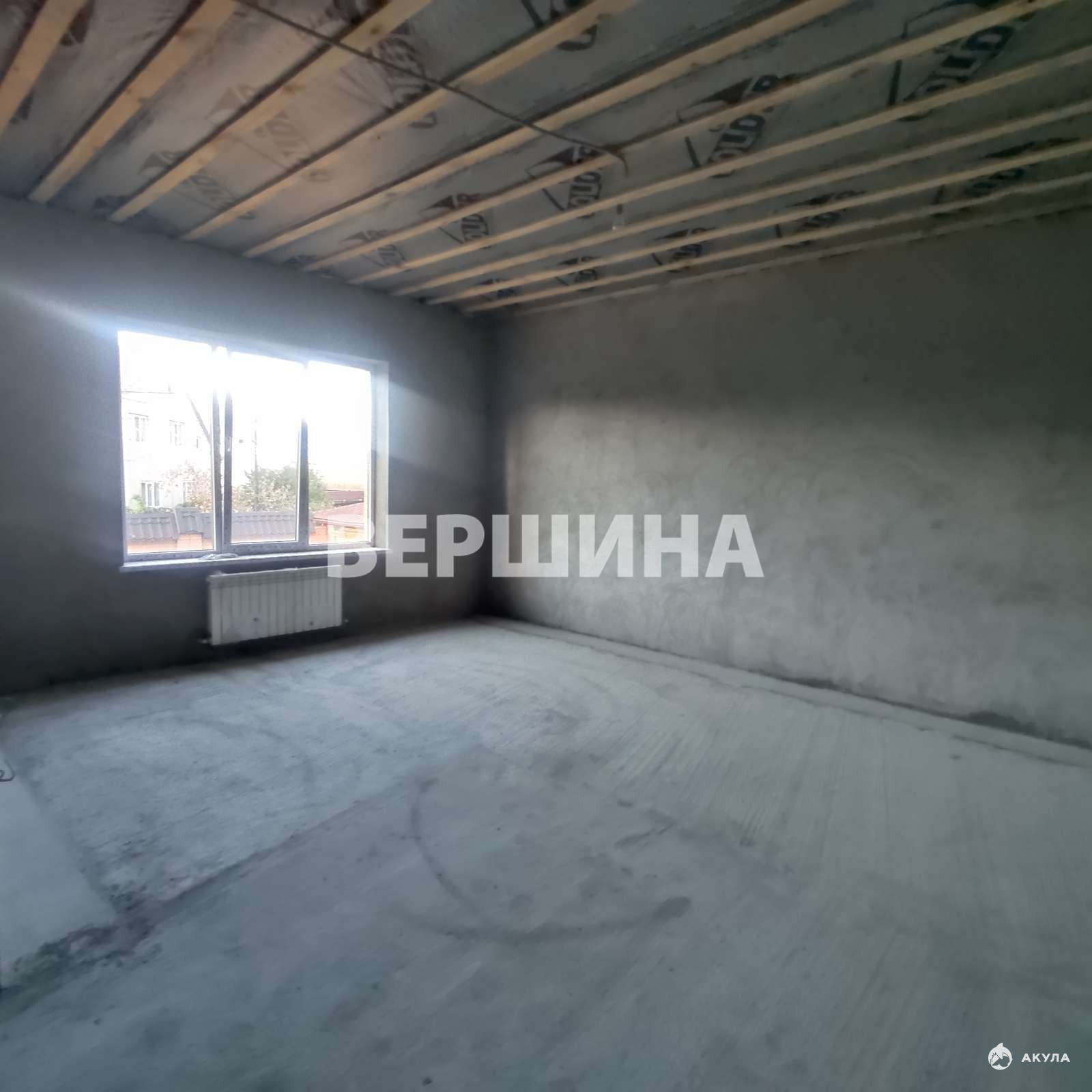 В доме черновая отделка: стяжка, штукатурка. Газ, вода, центральная канализация в доме, всё оформлено, лицевые счета открыты.