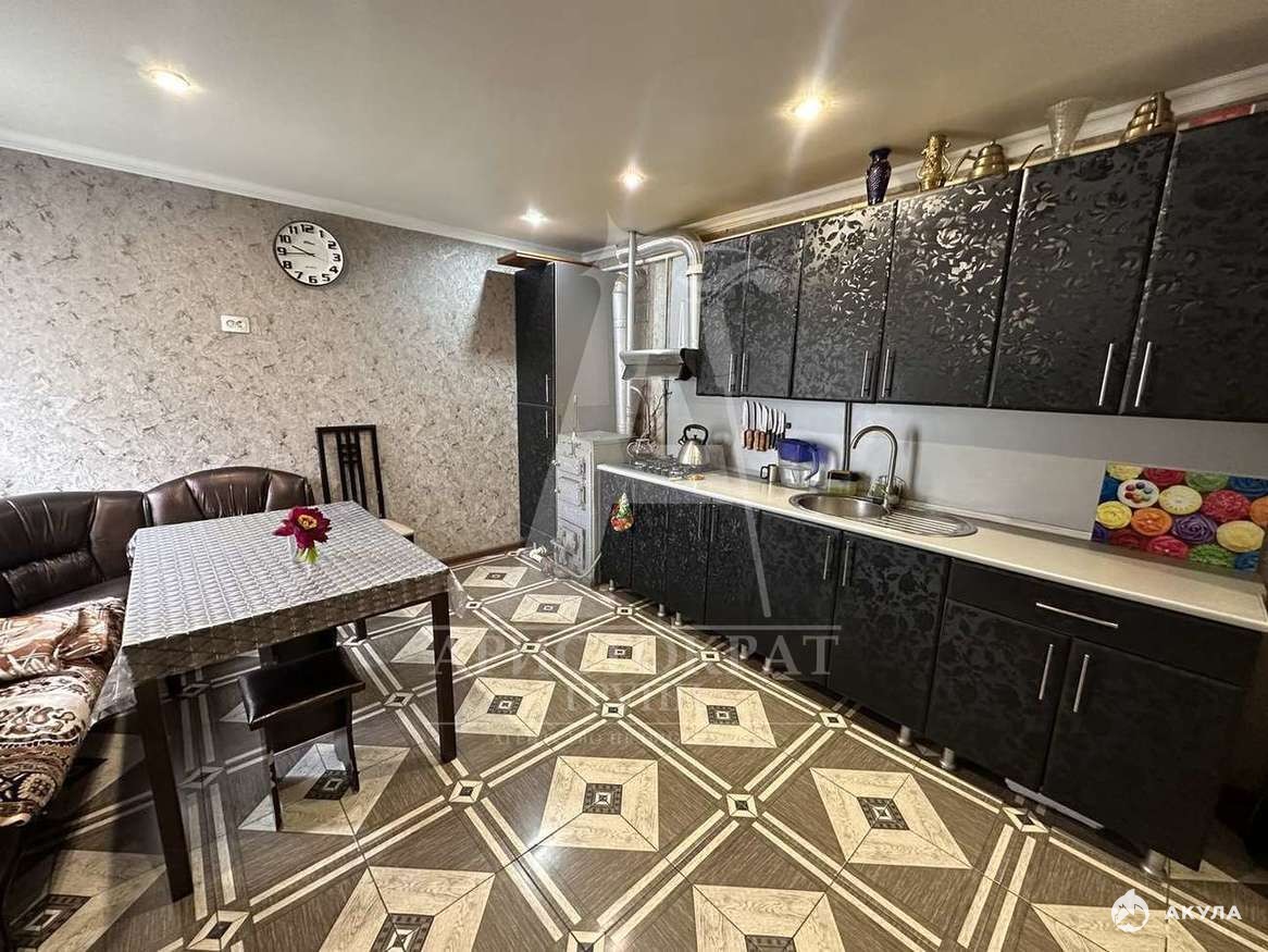В доме просторная кухня , раздельный сан/узел, 2 спальные комнаты. Материал дома -блочный, крыша металлопрофиль , есть заезд для машины и навес.Во дворе есть хоз .постройки и большой огород .