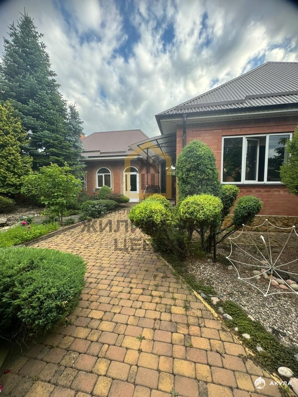 Вся территория дома и прилегающая территория полностью благоустроена, выполнено озеленение, есть прудик, мангальная зона с беседкой , парковочное место на 4 автомобиля, автоматические ворота, бассейн.