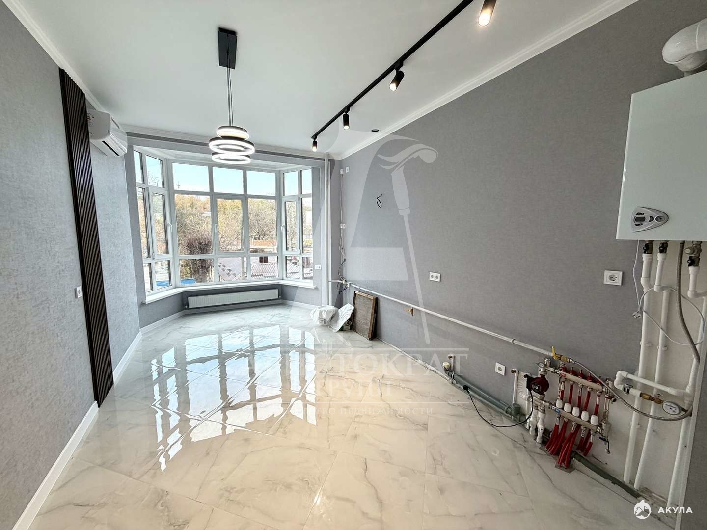 В квартире индивидуальное отопление , теплые полы везде ( кроме спален ) 3 кондиционера, много режимное современное освещение .
