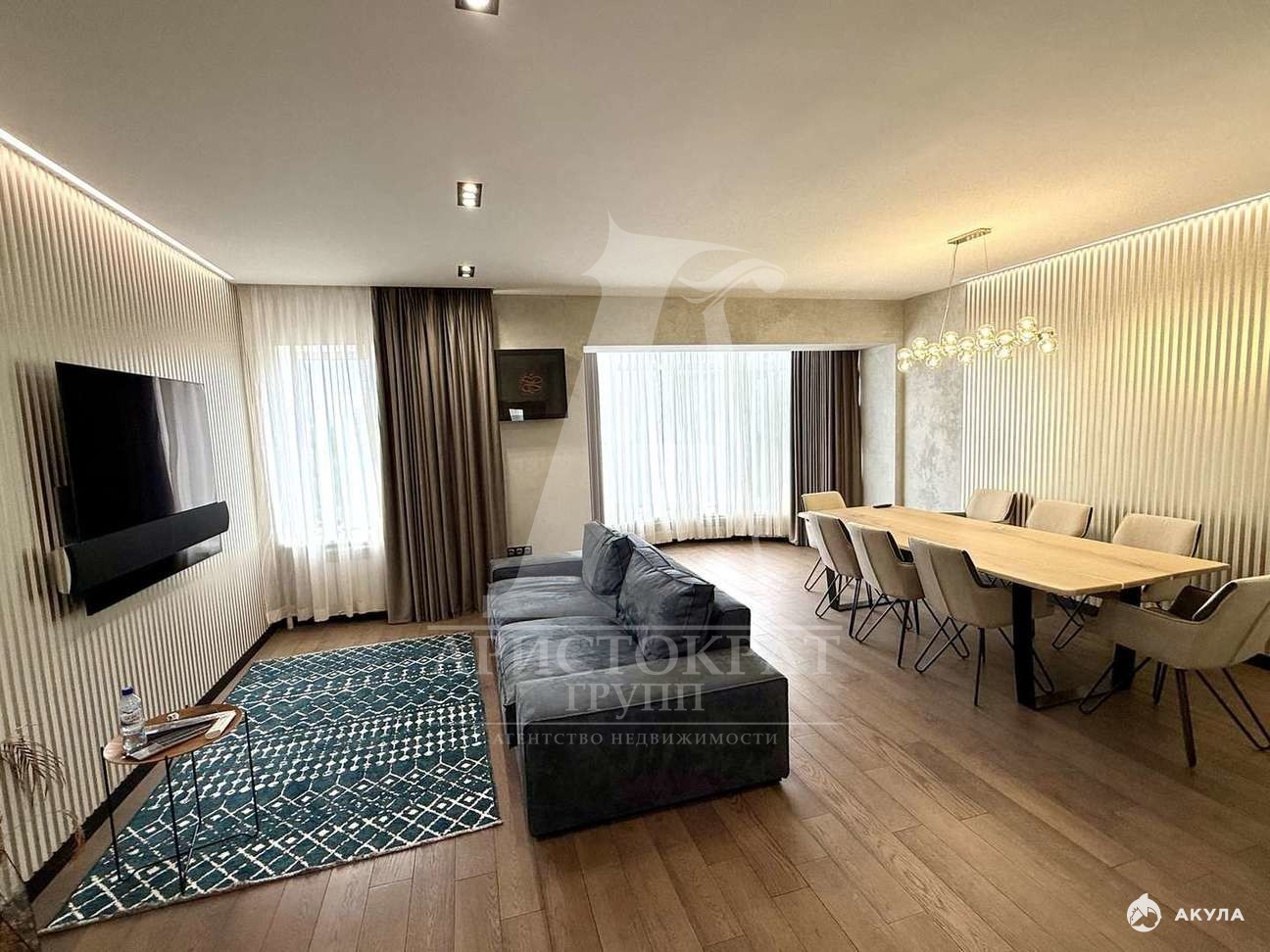 В квартире выполнен очень дорогой и современный ремонт , все делалось для себя и исключительно из самых дорогих и качественных материалов, особое внимание стоит уделить на множество световых режимов под любое время года и погоду!