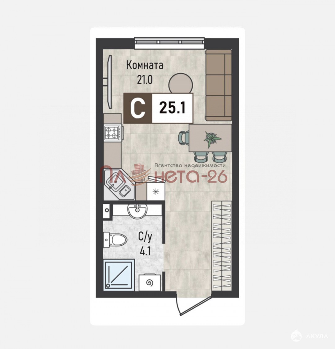 - 21 м²